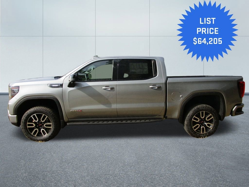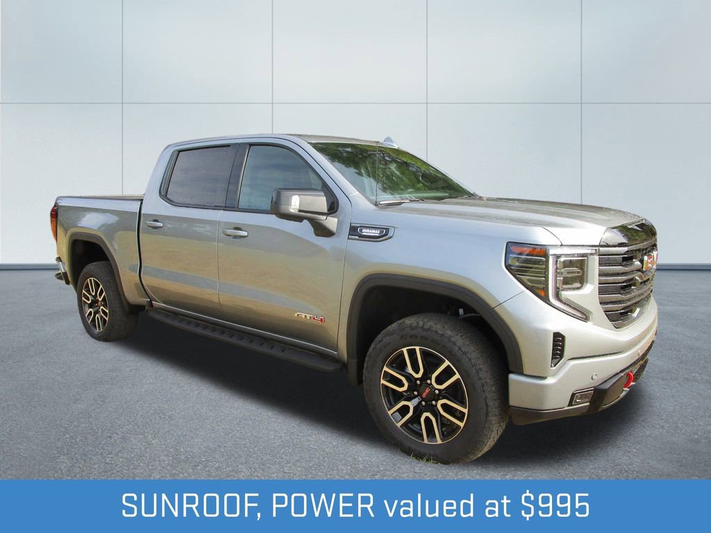The exterior of the Sierra 1500 AT4 exudes rugged sophistication, with its bold grille, sleek LED lighting, and striking Silver paint. Step inside the cabin and you'll be surrounded by premium materials, advanced technology, and thoughtful comfort features that elevate your driving experience.